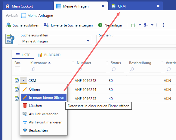 Die CRM-Anwendung muss in einem Webbrowser geöffnet werden (→ Web Client).
