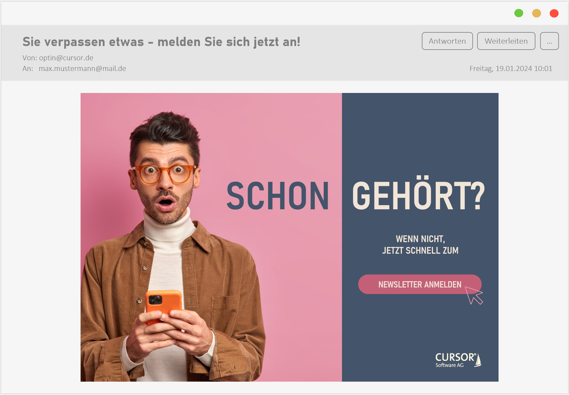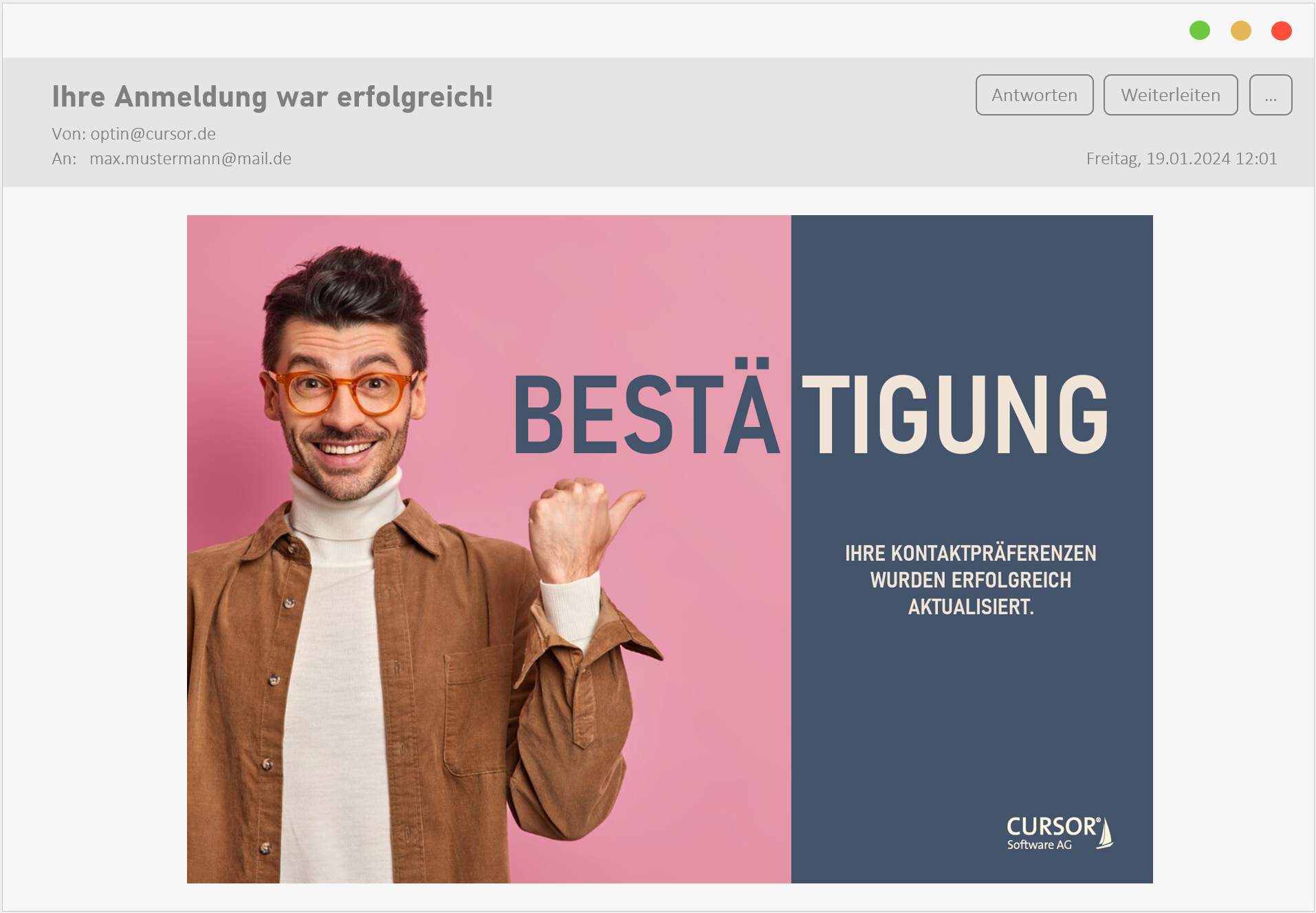 Damit das Modul seinen Sinn erfüllen kann, müssen die Zustimmungen oder Ablehnung durch die Personen gesetzt werden können. Dies kann beispielsweise über die Webseite oder ein Kundenportal erfolgen. Die Bereitstellung dieser Oberfläche obliegt dem Kunden und wird aktuell nicht durch CURSOR angeboten. Die Zusammenarbeit mit einem CURSOR-Partner ist möglich.