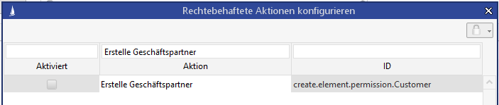 Zum Unterbinden der konventionellen Neuanlage über den Schalter NEU in der Geschäftspartner-Suchmaske oder im Hauptmenü muss das Funktionsrecht Neuanlage Geschäftspartner eingeschränkt werden. Hierzu ist in den Aktionsrechten die Berechtigung mit der im Modul enthaltenen Rechtevorlage CQ - Clearingstelle zu konfigurieren.