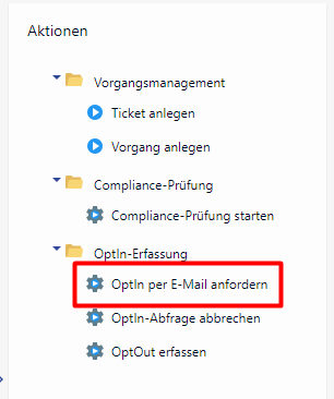 Zusätzlich gibt es einen dedizierten OptOut-Prozess, der durch Anwender (z.B. im Kundenservice oder Datenschutz) manuell gestartet werden kann. In diesem können OptOuts gesetzt werden.