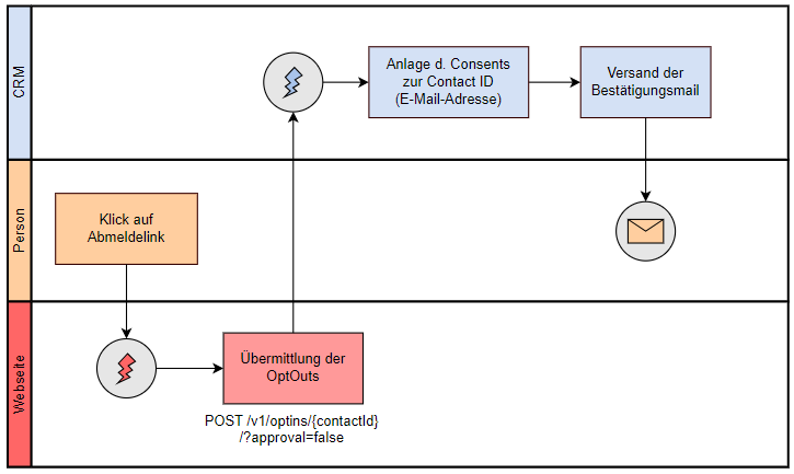 Skizzierung des Ablauf zwischen Website, CRM und der Person im OptOut-Fall