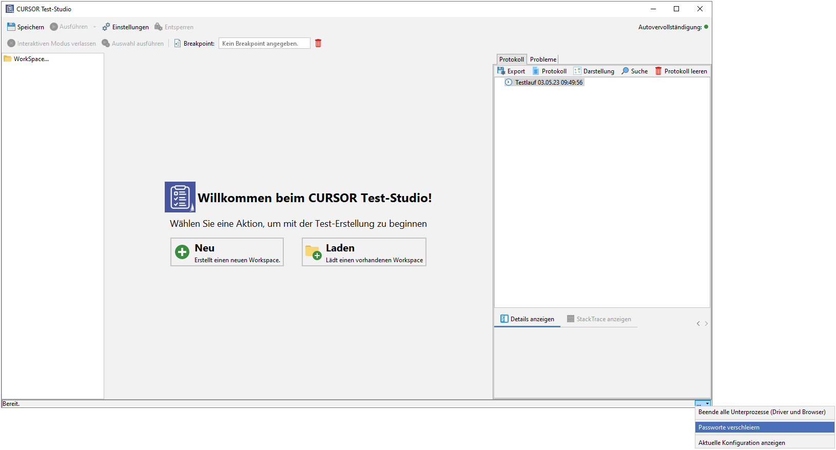 teststudio.customizing.password | Das Passwort des Nutzers (maskiert) |
