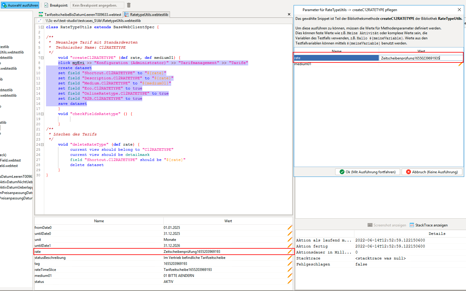 createCustomerSubdataDer Testfall heißt wie die Datei. Dies wird durch den Editor so vorgegeben. Hier dürfen keine Leer- oder Sonderzeichen verwendet werden. Auf Abweichungen weist der Editor deutlich hin.