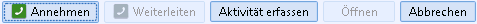 An activity can be created for the current or missed call. This activity is linked to the found contact person and (not visible in the standard) also with the CTI call.