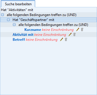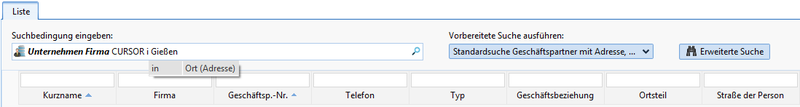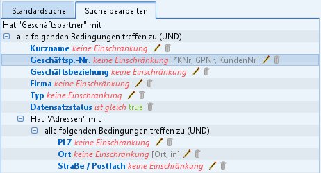 The 'Searches' are an important part of CURSOR-CRM. These searches are queries that have been given a name via which they can be called, edited and executed by the user. CURSOR-CRM/EVI already contains a basic package of such searches as delivered. These are required for the application to work. All information that appears on the screen in lists or on forms is queried from the database using these searches. They also ensure that reports, serial letters and serial emails can be created and that the individual documents are supplied with data.