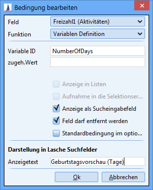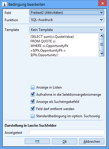 The search to be used can now be looked up in the 'Lookup search' entry in the system-wide field attributes. After selecting the search, its plainkey is displayed in the field attributes dialog. (In the previous versions the PK of the search had to be entered manually).
