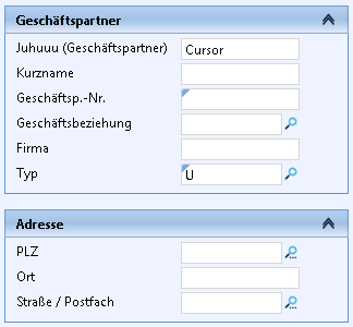 The left-hand area of the search mask is called the search field area. Here you can enter your search criteria. The fields displayed here depend on the specifications in the loaded search.