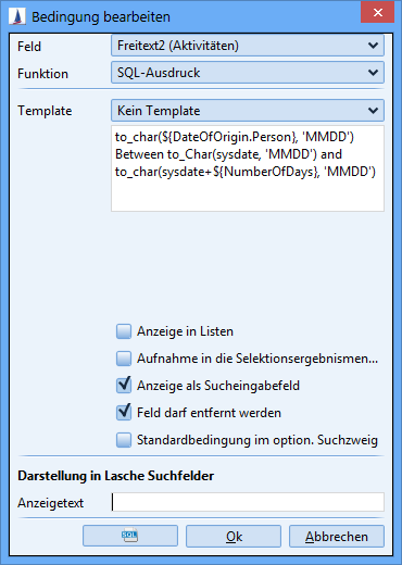 Only available in search mask for entities and reports!