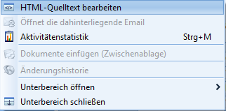 The content of the memo field in the activity can be displayed by default via the context menu as HTML source code. Thus, the user can directly add the HTML code from a different application or add any tags that are not supported by the HTML editor.