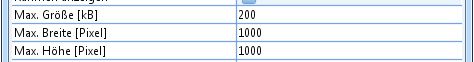 The format (height/width) and the maximum permissible size (in kB) may be entered for each field.