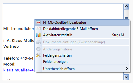 The HTML editor can also be used to create email templates and signatures. To do this, read the chapter Templates for emails and signatures.