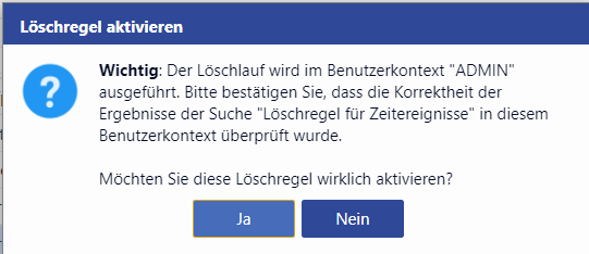 When activating the number of datasets for a deletion rule in another user context, a separate message is displayed