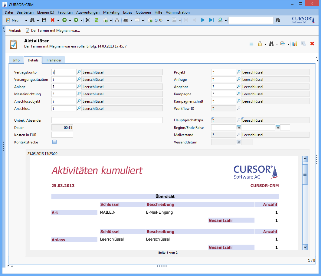 Figure: Opened report in the mask