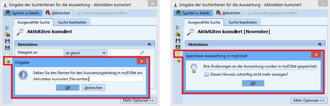Only those search criteria will be saved in myCRM that differ from the current search mask and the saved search.