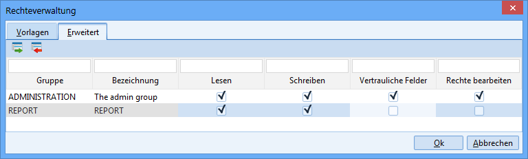 Reports can be assigned to one or more rights groups. Each user is only shown the reports for which he is authorized on the basis of the group assignments. The read permission of the rights group is decisive in this regard.