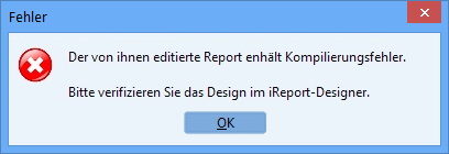 If changes in the design have been incorrectly adjusted and not verified, an error message appears, after which the report is reloaded for editing. The iReport Designer opens the last incorrectly customized report.