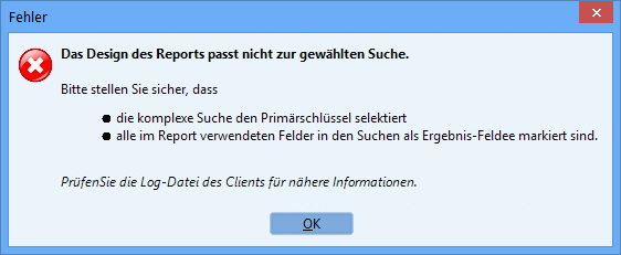 Before a report can be saved, its configuration and design must be checked. If, for example, the search for the report was adjusted, it may be that fields still used in the report were removed from the search.