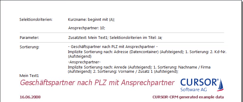 For CURSOR-CRM/EVI standard reports (such as Business Partner Portrait), see: Customize standard reports.
