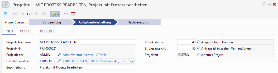 The phase overview is also visible if the dataset is opened via the normal CRM search mask, instead of via the task list.