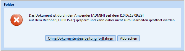 Errors can occur during the process workflow. The document the user wants to edit can e.g. be checked out by another user and therefore be locked for editing.