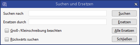 In order to easily replace texts in the script, the Find & replace dialog can be opened using the CTRL+F key combination.