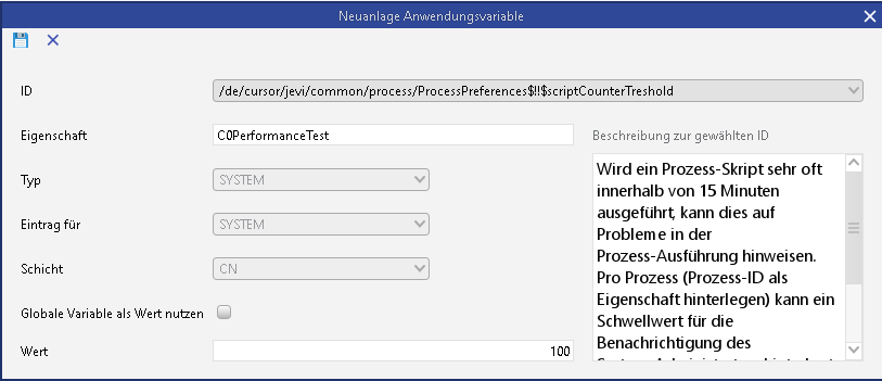A call-up of ProcessUtils.setVariable() makes variables available across the entire process. They will be available in all subsequent script tasks, user tasks and sequence flows. Process variables can represent almost any data type with the exception of the IScriptingWorkSpace class. If an object of the IScriptingWorkSpace class is determined by the call-up of WorkSpaceScriptUtils.search(), then this can only be used in the current script task. This variable will remain empty in the global process. That will prevent the setting of any cross-process step write blocking. A further processing of the search results can only be done in read mode. That is offered by the WorkSpaceScriptUtils.searchForRead() method.