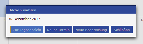 By clicking on a day in the calendar, appointment and meeting activities can be created in the Web Client. In the Windows Client, a time period for creating an appointment can be selected via Drag & Drop.