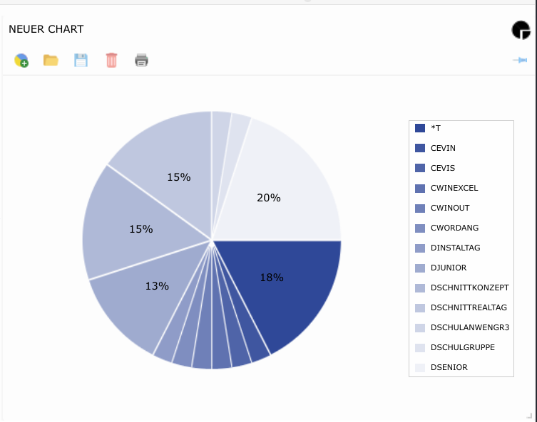 The feature opens up various possibilities in the representation of your data. As far as permitted by your permission you have the possibility to configure and save own charts.