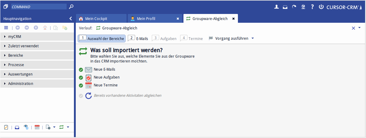 You must import incoming emails, tasks and appointments from Outlook to CURSOR-CRM.