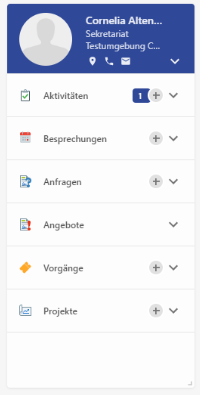 Show opened contact person | Selected The opened contact person is displayed. Condition: Tile lies on an entity board for the contact person |