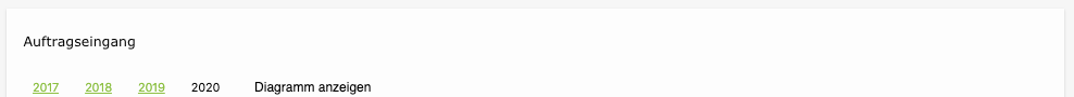 The header shows the configured years for which the incoming orders should be displayed. By clicking the button "Show diagram" the diagram view can be called up over all years.