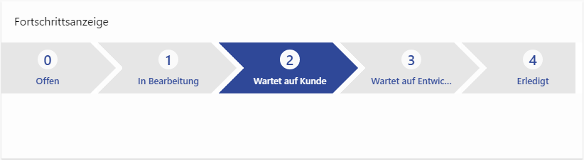 Order of field values | Manual configuration of step order, displayed in the progress display. The key values are to be specified comma separated without spaces. Field values can be grouped using square brackets so that all keys within a group are mapped to a single display name (see example below). Here the technical key values are used (e.g. WAIT CUSTOMER). Except for "_", no special characters are allowed, including umlauts. |
