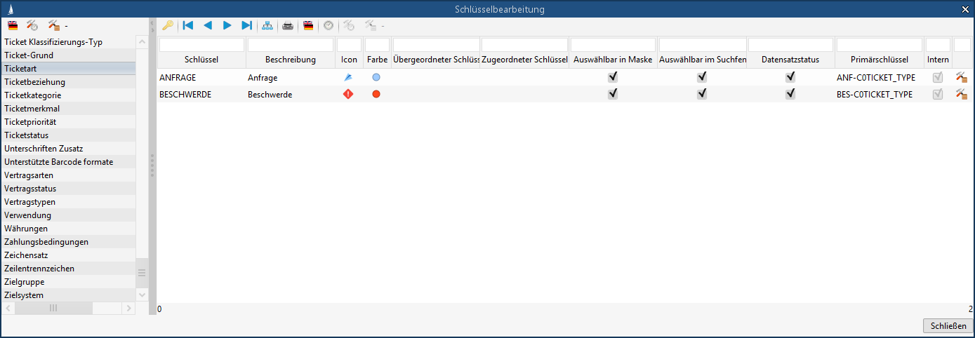 The icons for displaying ticket type and priority can be adapted to your own preferences and key values in the key maintenance of the respective key.