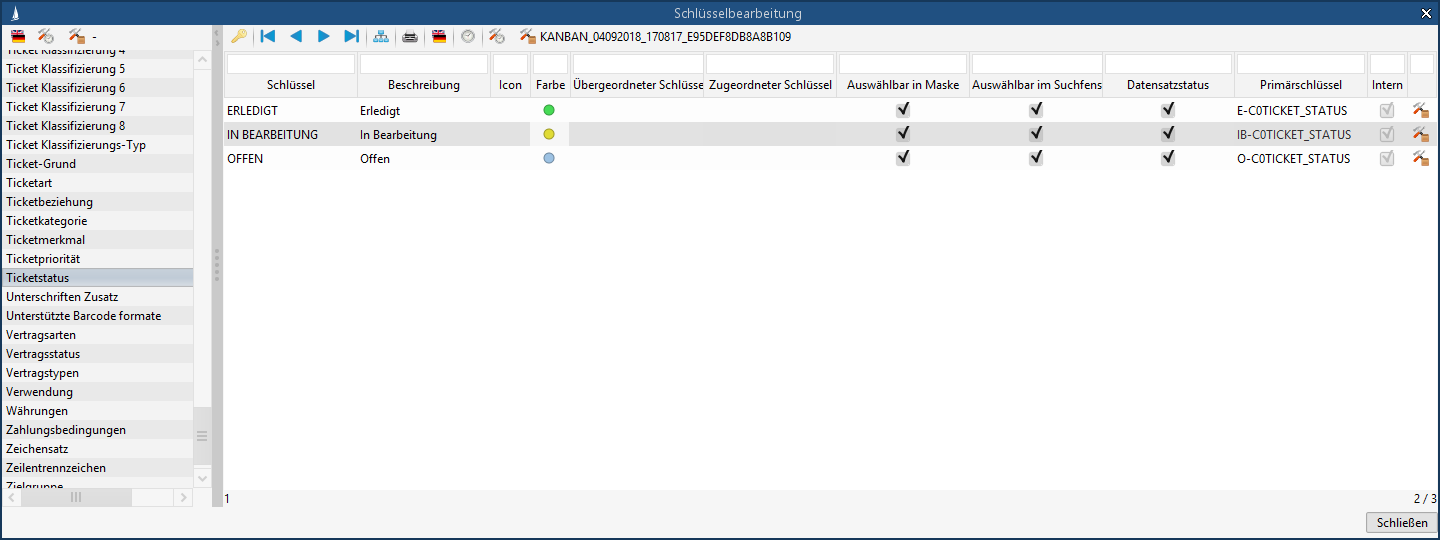 | Assignment of ticket status to default values ( Default setting: