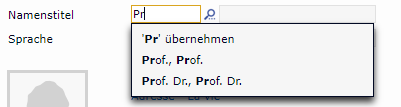 To enable the selection of the currently entered value, this value is displayed as the first entry in the suggestion list and can thus be selected in the usual way. Note that this value is only stored in the current dataset. The manually entered value is therefore not available to other datasets. It should also be noted that an automatic value selection is not carried out with a picklist field as soon as a unique value exists.