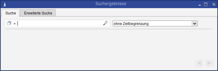 You can start the system search anytime from the tool bar of the application window. It is opened in its own window, so you can switch back and forth from CURSOR-CRM and the system Search, as often as you like. This makes sense, for example, when you have opened a dataset from the result list and then realize that this is not the correct one. You can then switch back to the search result of the search.