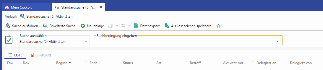 In the case of the search mask for activities, some special features have to be considered.