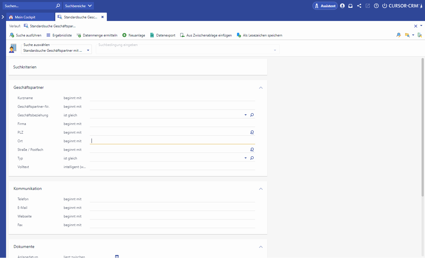 Advanced search in the business partner area