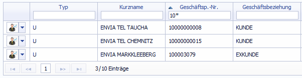 After entering the filter criterion, you do not have to perform any actions. After a few seconds, the filter is applied. The filter type used per default is 'starts with'. By using the characters '?', '*' or '|' the filter type changes to regular expressions.