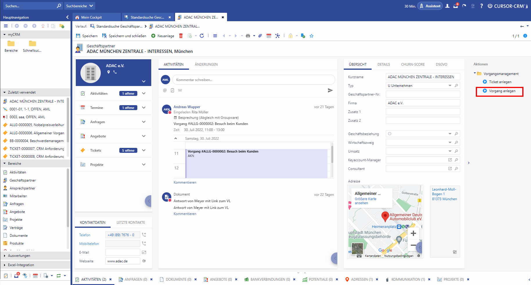 An query to the customer can be called up directly by the action box query to customer.