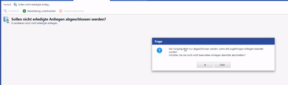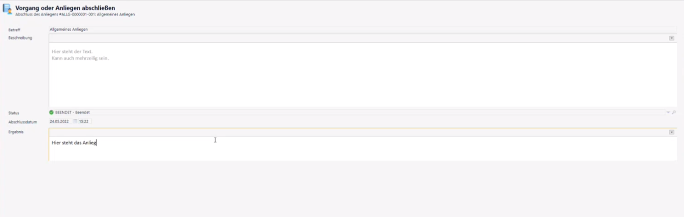 Requests are functional extensions of the tickets to store even more detailed information, or to handle several requests individually and still run under one ticket (collector). The completion of tickets and requests is processed in a guided manner for the user.